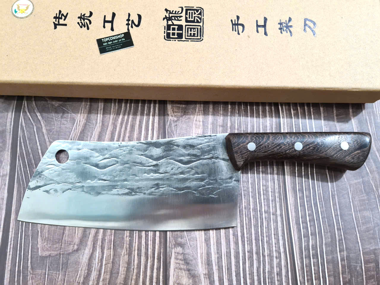 TỔNG DÀI : 30cm, LƯỠI: 17.5cm,RỘNG : 7cm, dày: 2.5mm, CHẤT liệu lưỡi: 5Cr15MOV (thép 5 crom 15 molypden vanadi) Chất liệu CÁN: gỗ Cánh gà, NẶNG : 3 lạng