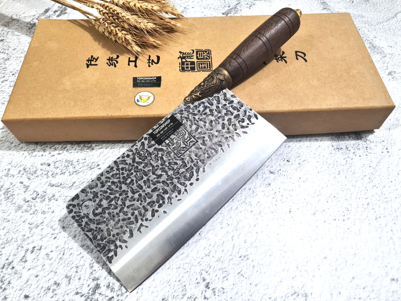 Dao Phúc Sen - Dao Chặt Gà Cán Cẩm Khâu Đồng G05D - Kích thước: lưỡi: 23cm, cán: 13cm, rộng: 8,5cm-9cm, dầy: 0,3, trọng lượng: 500g - 600g - Chức năng: sử dụng chuyên chặt