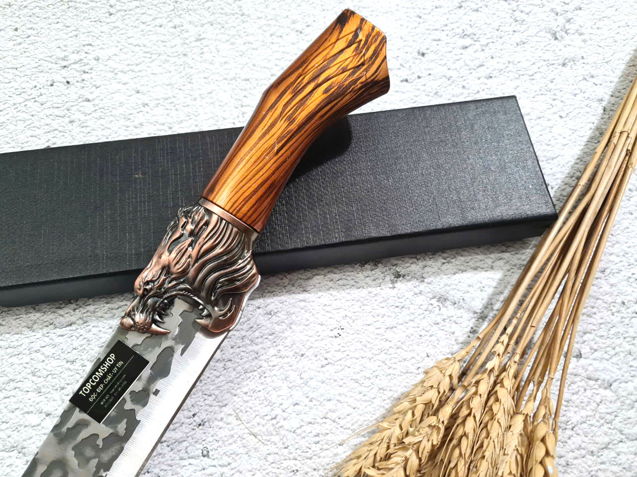 • Chất liệu: Thép Nhật 420J2, độ cứng 53HRC – siêu bền, chống gỉ • Lưỡi dao: Dày 2.5mm, sắc bén, hoàn thiện bằng đá mài nước • Tay cầm: Gỗ Pakka sang trọng, chống