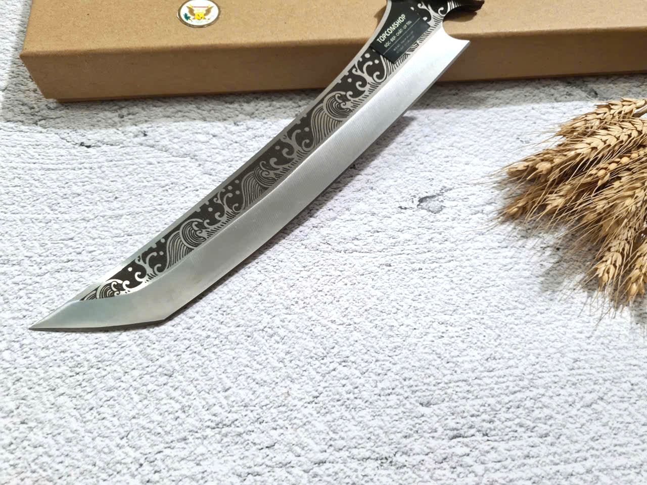 **** SASHIMI MÃ TR13 ều dài TỔNG: 37cm Chiều dài lưỡi: 23cm Chiều rộng lưỡi: 4.5cm, Độ dày lưỡi: 3mm Trọng lượng: 2.5 lạng chất liệu lưỡi : 7Cr17MOV (thép 7 crom 17 molypden vanadi) Chất liệu tay cầm: gỗ cẩm lai, phụ kiện khâu đầu hổ và chuôi bằng đồng