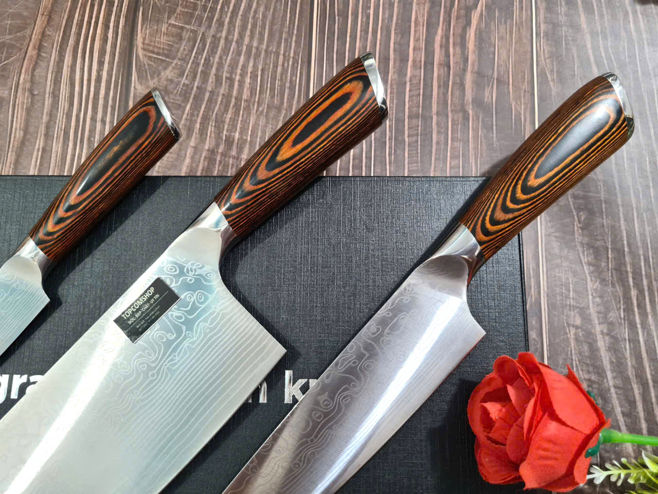 ✨DAO - BỘ 3 DAO BẾP NHẬT BẢN THÉP DAMASCUS MÃ A5 DT2 nt topcomshop vn