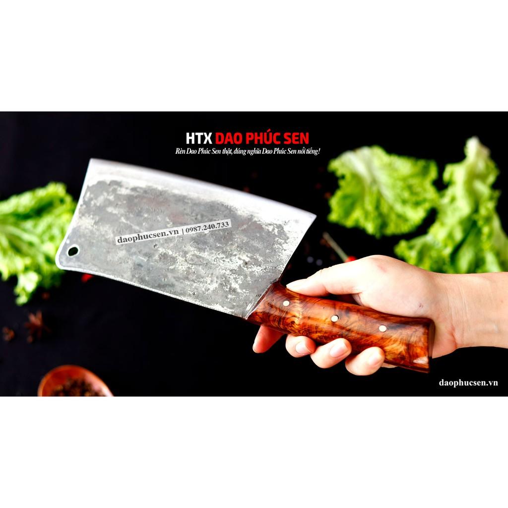 Dao Phúc Sen - Dao chặt xương 5ly - Chất liệu: 100% thép nhíp ô tô được lựa chọn và kiểm duyệt kỹ càng. - Chất liệu cán: gỗ cẩm chỉ núi - Kích thước: