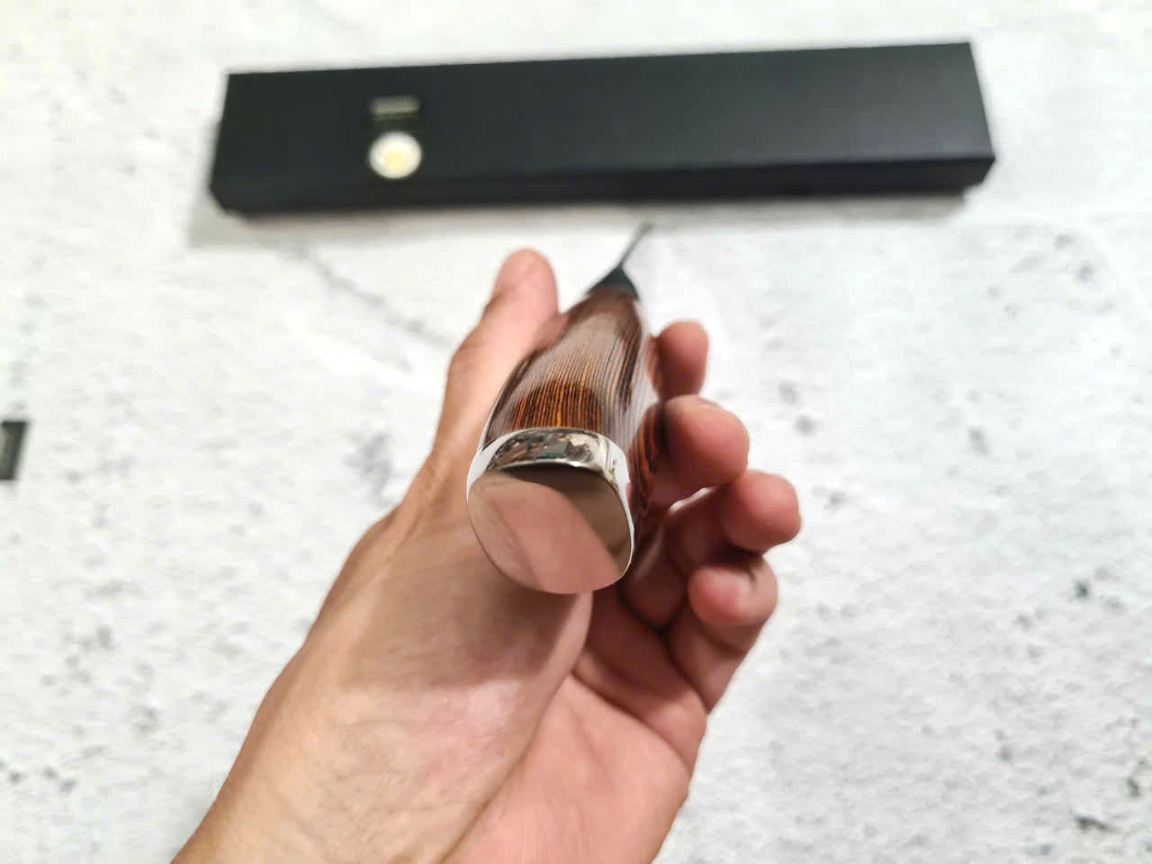 - Được làm từ thép 4Cr14 cao cấp, Cán được làm bằng gỗ Pakka có vẻ ngoài thanh lịch