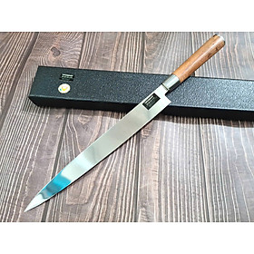 Dao Phúc Sen bản Takohiki - Kích thước: lưỡi: 24cm, cán: 12cm, rộng: 3.5cm, dầy: 2.5 ly, trọng lượng: 200g - Chức năng: sử dụng chuyên thái thịt ,cá, rau củ và các thực phẩm