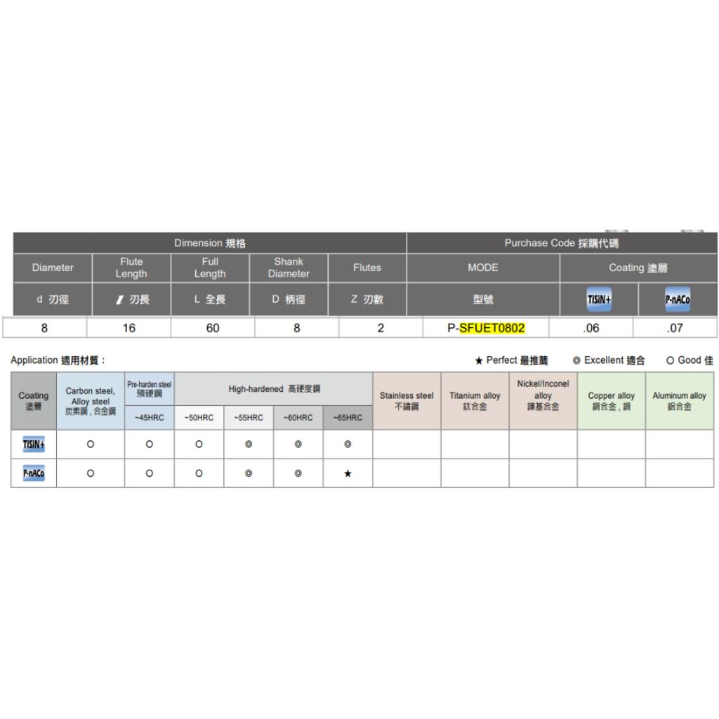 Mua tại TiktokSpeed Tiger là hãng dao cụ của Đài Loan thành lập vào năm 1998, ngoài dao phay ngón, hãng còn sản xuất các dòng mũi khoan hợp kim nguyên khối để gia công cho thép mềm, thép cứng, inox, nhôm,….Speed Tiger không chỉ là nhà sản xuất dụng cụ cắt lớn nhất, mà còn tiên phong trong kết hợp công nghệ lớp phủ của Đài Loan giúp tăng tuổi thọ, độ bền, phù hợp với từng vật liệu gia công. Thông tin sản phẩm: Square Type Type D8 Speed Tiger Nano 200+ Dao phay vuông 8mm 2 me cắt Square Type – 2 flutes Xuất xứ: Đài Loan Mã sản phẩm: SFUET0802 Địa chỉ: 24, Đường số 16, Cư xá Lữ Gia, Phường 15, Quận 11, TP. HCM
