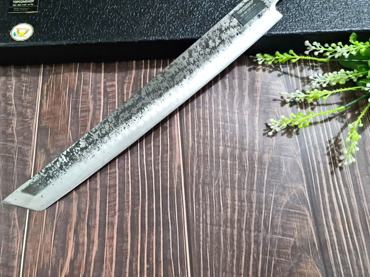 MÔ TẢ SẢN PHẨM DAO BẾP SASHIMI MUĨ VÁT MÃ N53 THÔNG TIN SẢN PHẨM **** DAO BẾP SASHIMI MUĨ VÁT MÃ N53 : TỔNG DÀI : 45cm, LƯỠI: 30cm,RỘNG : 4cm, dày: 2.5mm, CHẤT