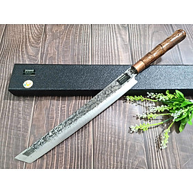• Chất liệu: Thép Nhật 420J2, độ cứng 53HRC – siêu bền, chống gỉ • Lưỡi dao: Dày 2.5mm, sắc bén, hoàn thiện bằng đá mài nước • Tay cầm: Gỗ Pakka sang trọng, chống
