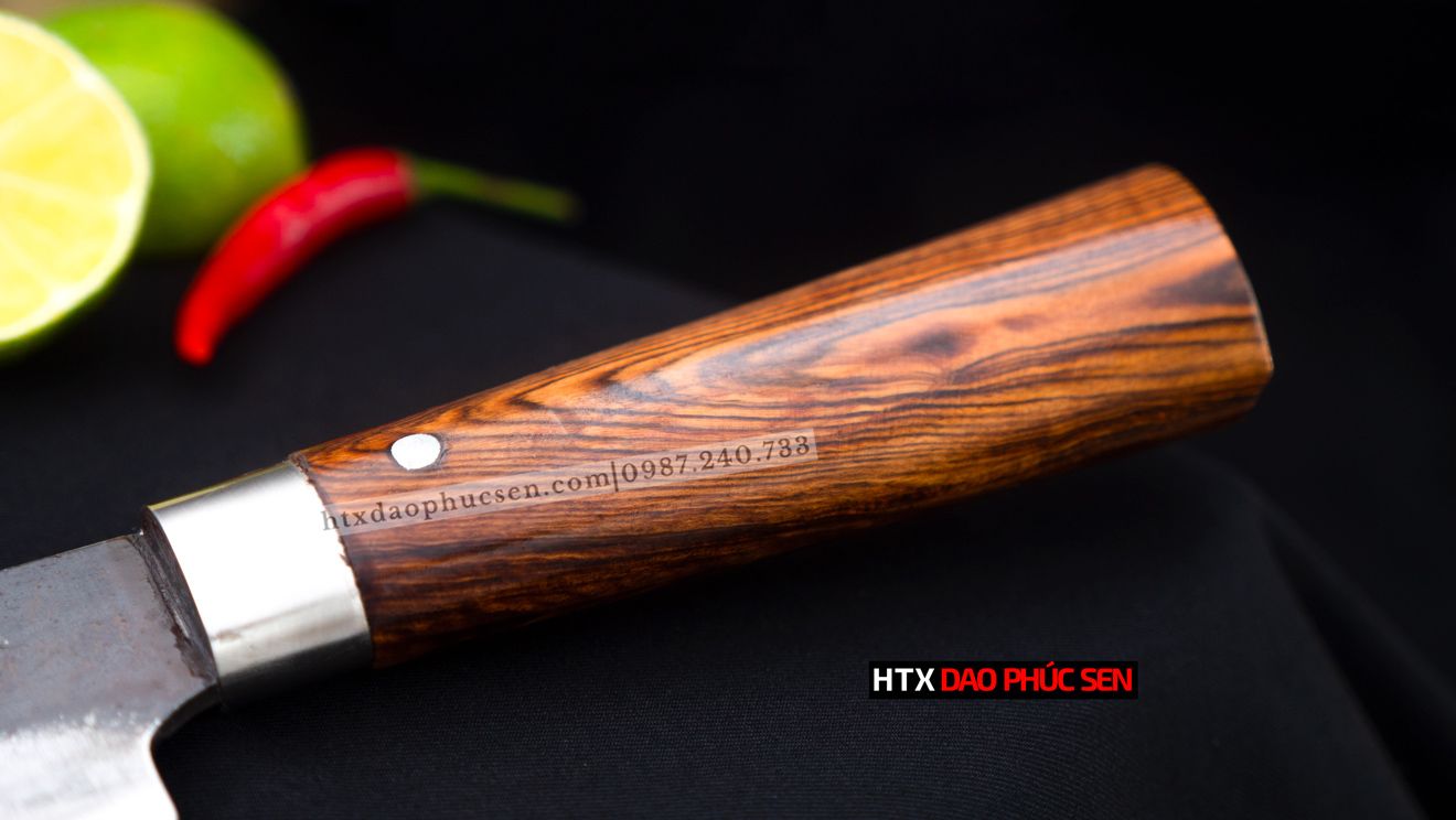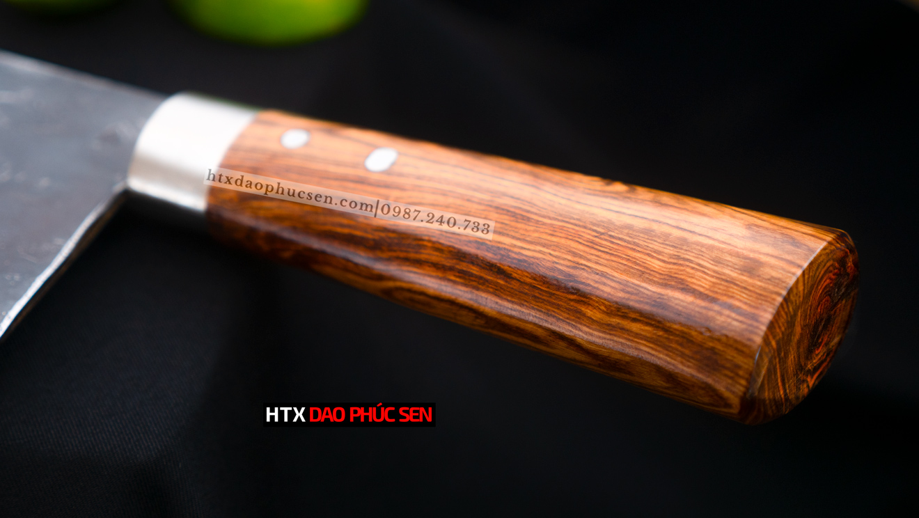 Dao Phúc Sen Chặt Gà Vịt - G05TDD Phần cán Dao chặt gà chống dính - G05TDD được làm từ gỗ cẩm chỉ là loại gỗ thường được sử dụng trong sản xuất đồ mỹ