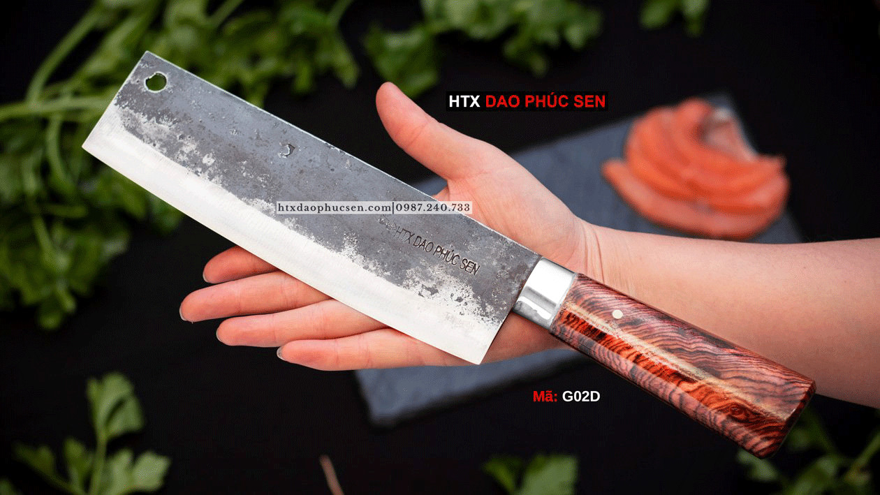Dao phúc sen thái thịt thép trắng cán gỗ tự nhiên G02KC