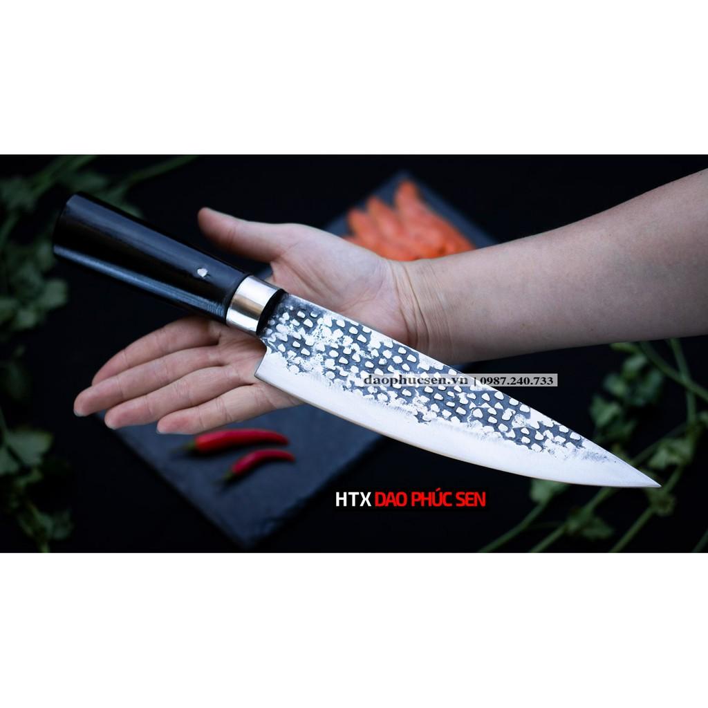 Dao Phúc Sen - Dao Thái Nhỏ Mini (Vỏ Gỗ Cẩm Chỉ) - Chức năng: chuyên chặt thái cá, chặt gà, lọ - Kích thước: Lưỡi: 26cm, cán: 12,5cm, rộng: 6,5cm, dầy: 4ly, trọng lượng: