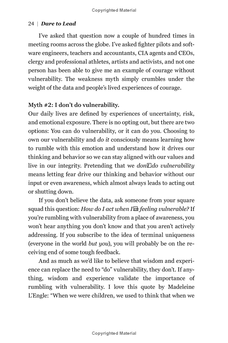 When we dare to lead, we don't pretend to have the right answers; we stay curious and ask the right questions. We don't see power as finite and hoard it; we know that power becomes infinite when we share it and work to align authority and accountability. We don't avoid difficult conversations and situations; we lean into the vulnerability that’s necessary to do good work.