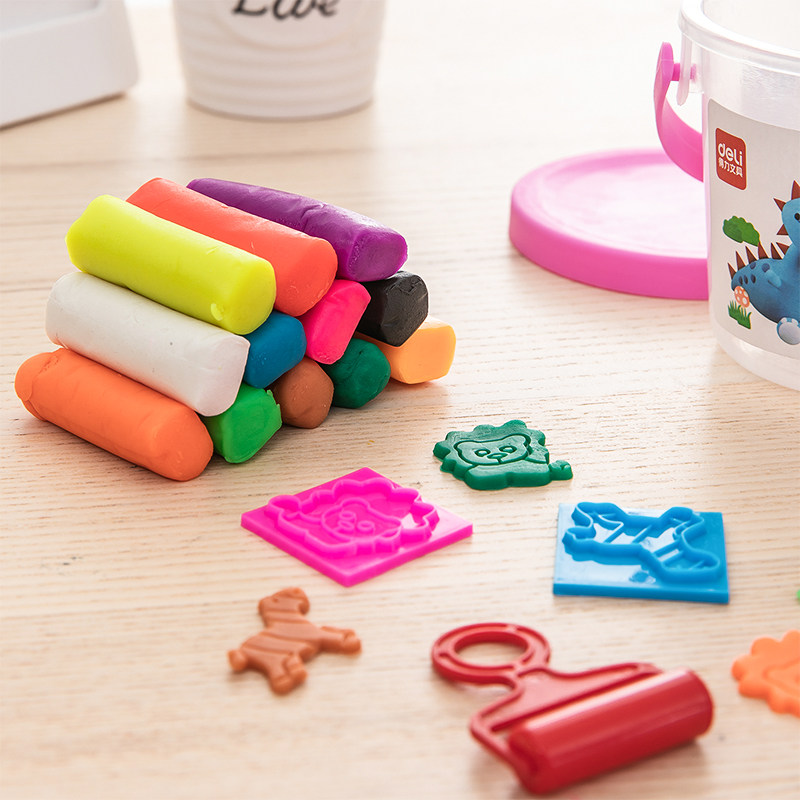 Đất nặn nhiều màu Deli - hộp nhựa Chất liệu: Bột mì, Nước, Chất tạo màu thực phẩm (Nguyên liệu gần tương tự nguyên liệu làm Tò he) Cực kì an toàn cho trẻ nhỏ