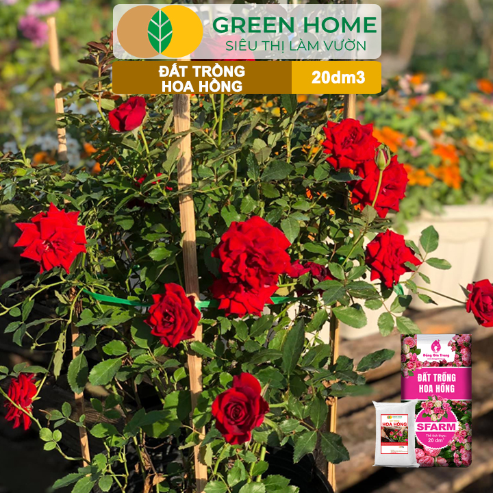 Đất Trồng Hoa Hồng Greenhome, Sfarm, Bao 20dm3 (8kg), Hữu Cơ, Trộn Sẵn, Tiện Lợi, Đầy Đủ Dinh Dưỡng