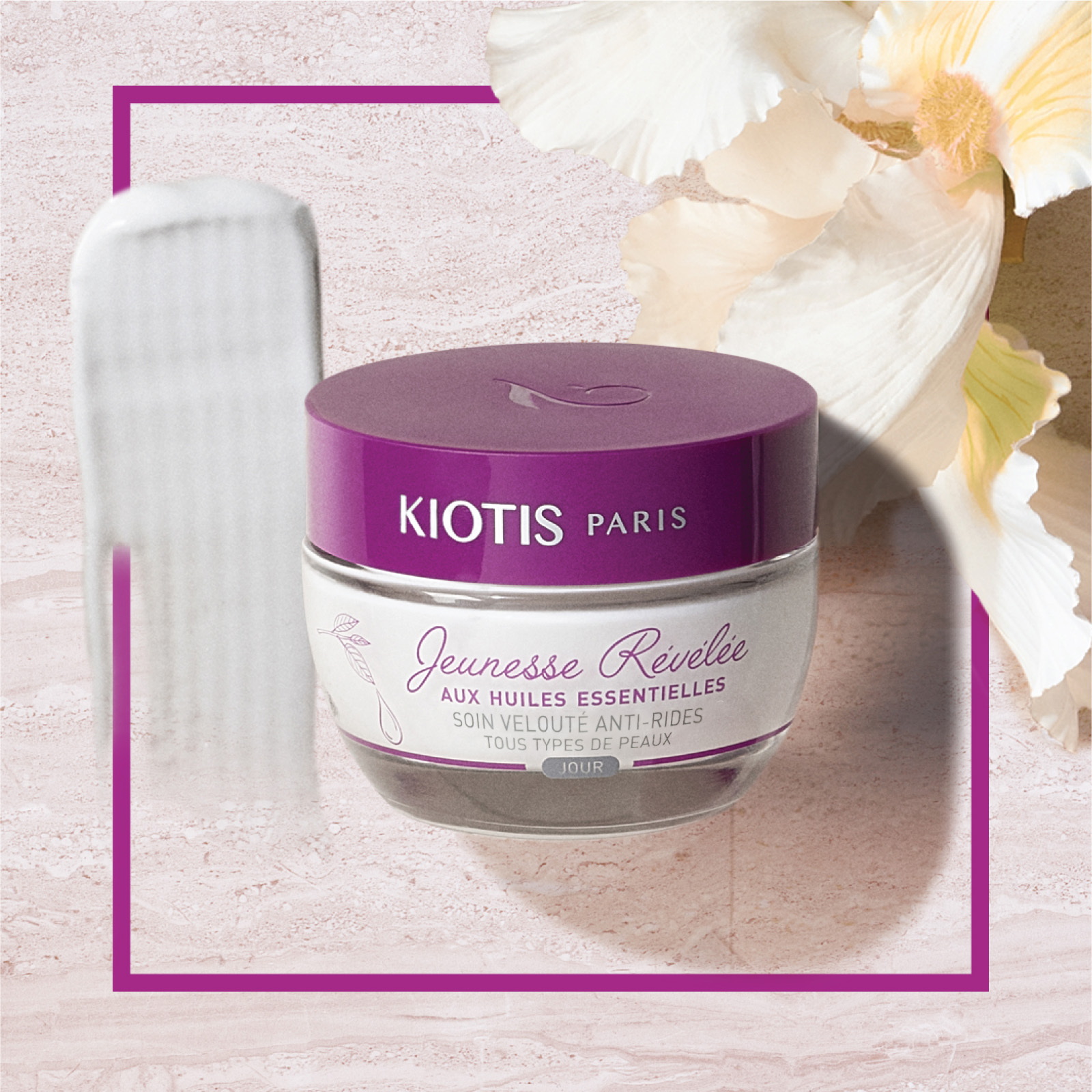 - Giúp làm chậm quá trình lão hoá da, bảo vệ da và phục hồi cho da Dòng sản phẩm giảm nhăn Kiotis Paris đạt được các bằng sáng chế ấn tượng: Tại Pháp, Hoa Diên vĩ IRIS là biểu tượng của quyền lực, sự quý phái Hoàng gia. Bạn sẽ thấy loài hoa này xuất hiện trong biểu tượng hoàng gia nước Pháp, thêu trên quần áo hay in trên trang sức của người dân nơi đây. Chiết xuất Iris có khả năng chống oxy hóa cao; bảo vệ da bằng cách trung hòa các gốc tự do; hạn chế sự đứt gãy protein từ đó ngăn chặn tình trạng da kém đàn hồi, chùng nhão Chiết xuất hoa hồng đá CISTUS thường được ứng dụng nhiều trong lĩnh vực sản phẩm mỹ phẩm, chăm sóc sắc đẹp. Loại hòa này có nhiều công dụng tuyệt vời như sau: