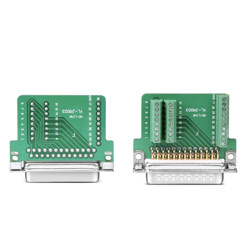 - Đầu bấm dây DB25, sẽ giúp cho việc thực hiện hoàn thanh nhanh chóng 1 Cáp DB25 nhanh chóng, chính xác, nhờ vào việc siết ốc bên trong bản mạch PCB. Người sử dụng có thể vặn nhẹ các ốc vít bên trong để nhấc đầu dây và chuyển thành đầu giao tiếp khác, DB25 đực sang DB25 cái, hoặc DB25 cái sang DB25 cái.v.v. Hoặc theo sơ đồ đấu nối của môt số thiết bị yêu cầu.