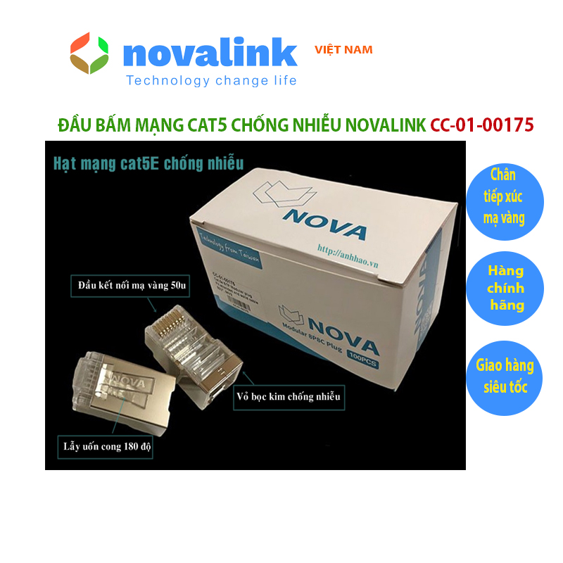 Thông tin chi tiết đầu bấm mạng RJ45 cat5e chống nhiễu Nova CC-01-00175 chính hãng