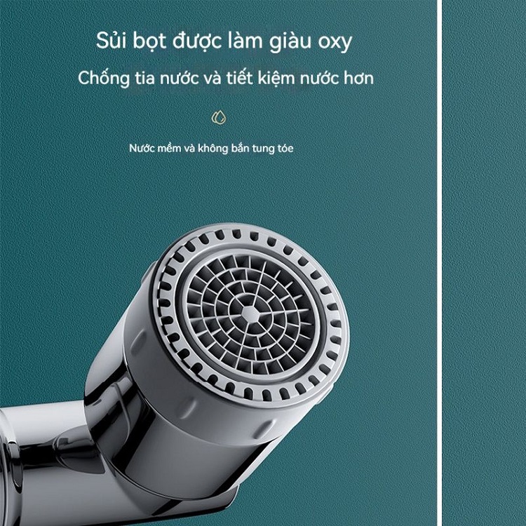 • Máy Lọc xoay: Vòi lọc nước thêm không khí vào dòng nước làm cho nó giàu oxy và cung cấp một dòng nước rộng hơn mà không bị bắn tung tóe ở mọi nơi và nhẹ nhàng trên da, phần đính kèm vòi phun có thể xoay 1080