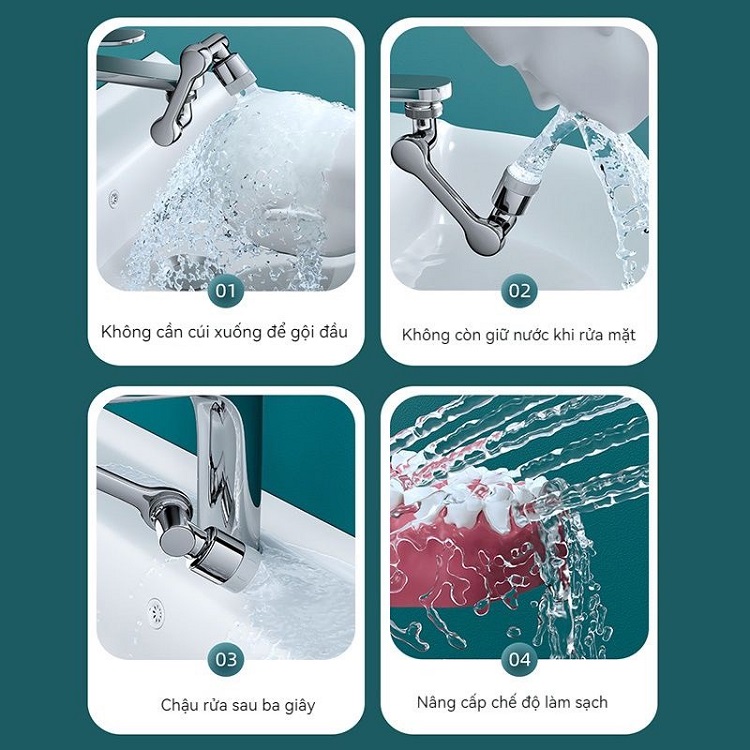 Đầu Chuyển Đổi Vòi Nước Cơ Học Xoay 1080 Độ Chống Văng Đa Năng Cho Nhà Tắm