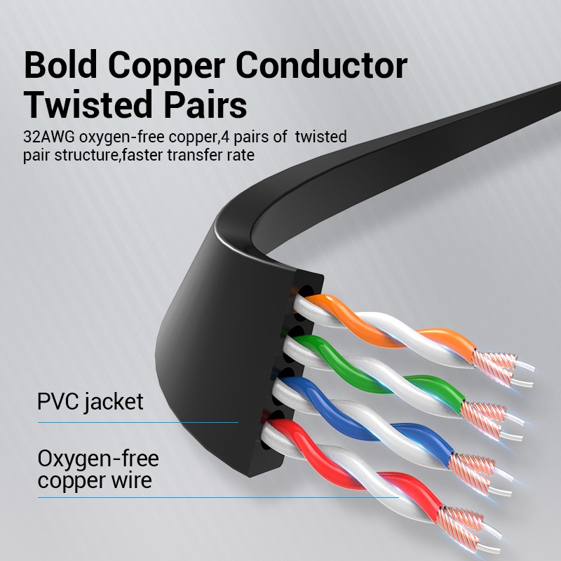1. Data transfer rate: 10G 2. Frequency: 600MHz 3. 4 shielded twisted pair (U/FTP) of copper wires 4. Pure Copper Core