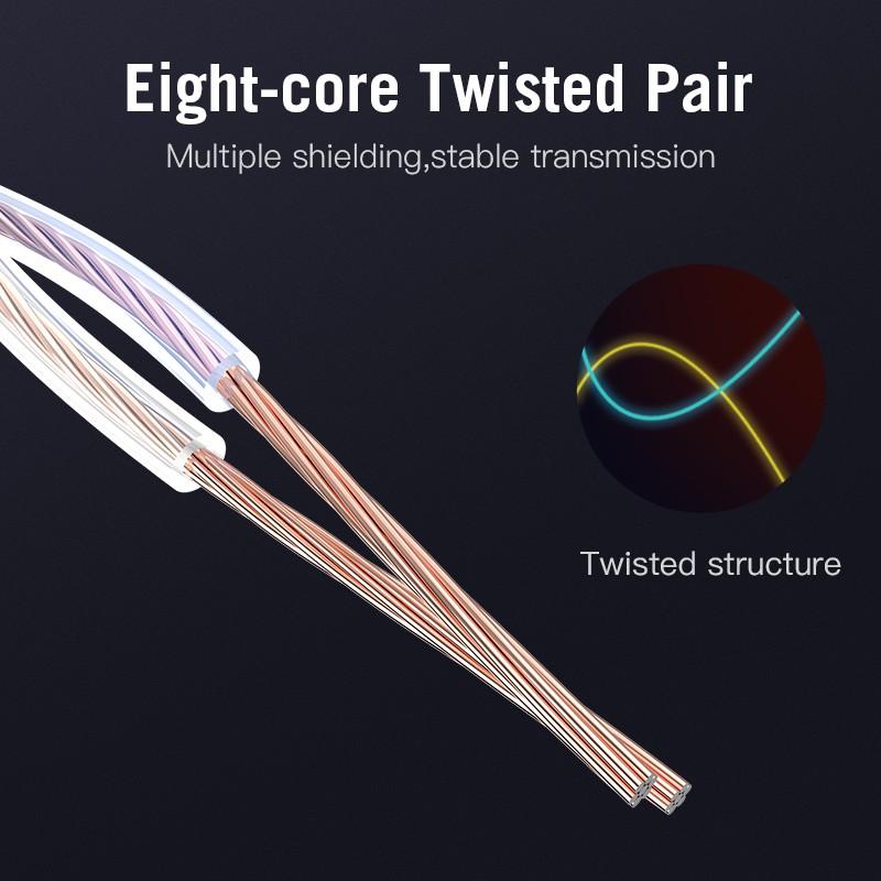 1. Data transfer rate: 10G 2. Frequency: 600MHz 3. 4 shielded twisted pair (U/FTP) of copper wires 4. Pure Copper Core