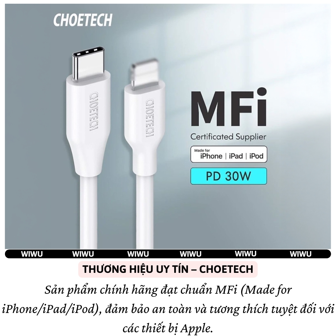 CÁP SẠC NHANH CHOETECH IP0040 – PD 30W, DÀI 2M, CHUẨN MFi – SẠC NHANH, TRUYỀN DỮ LIỆU TỐI ƯU