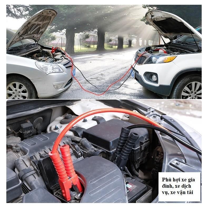 Kết nối đầu kẹp màu đen còn lại (-) của cáp với vỏ động cơ hoặc thân xe chết acquy.