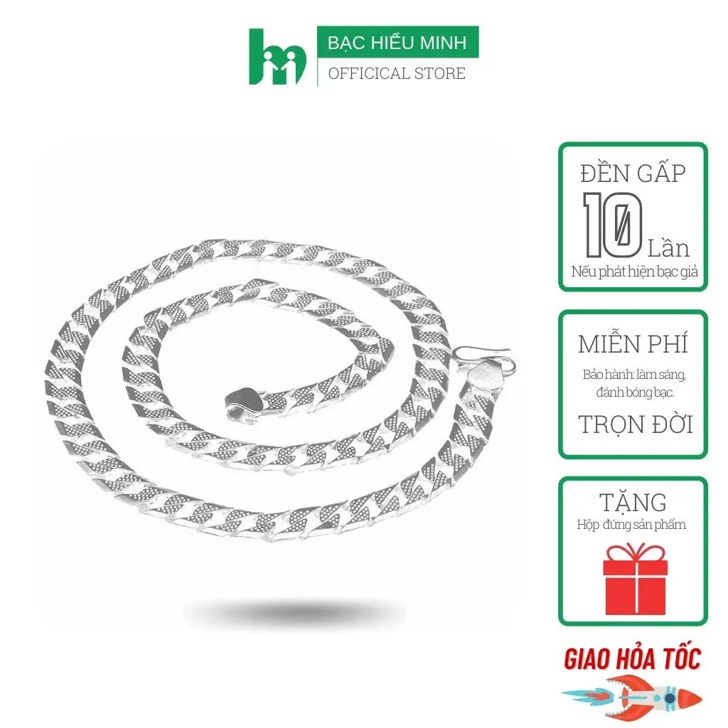 * Thương hiệu: Bạc Hiểu Minh * Xuất xứ: Việt Nam * Chất liệu: - Bạc ta 925, trọng lượng 6,5 chỉ - 7,2 chỉ. Dài 52cm -53cm - Bạc 925 (Bạc 925 là tiêu