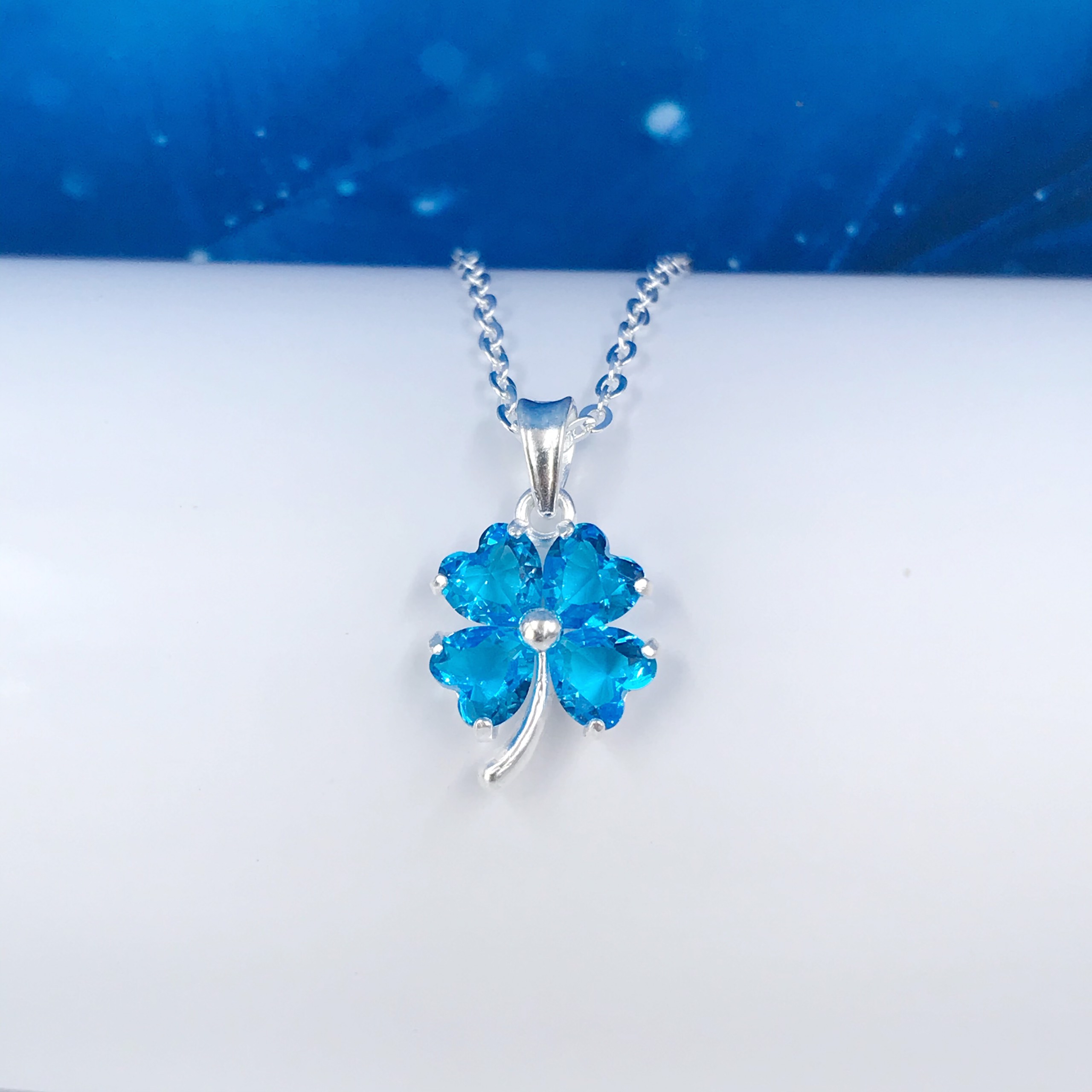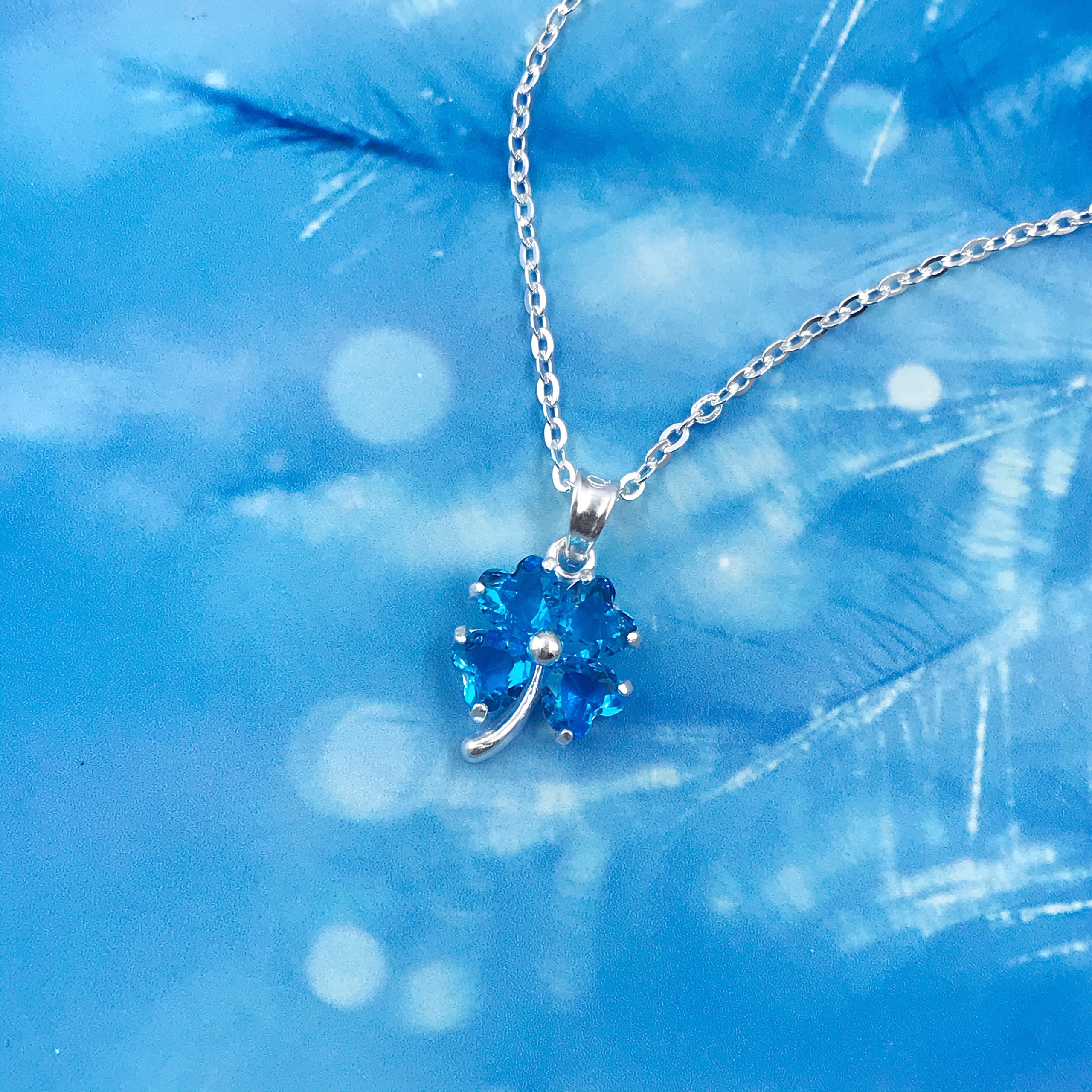 ✨Dây Chuyền Vòng Cổ Bạc 925 Cao Cấp Cỏ 4 Lá Xanh Dương Mix Đá CZ Chống Xước Sang Trọng Sáng Đẹp BẠC HIỂU MINH DMD454