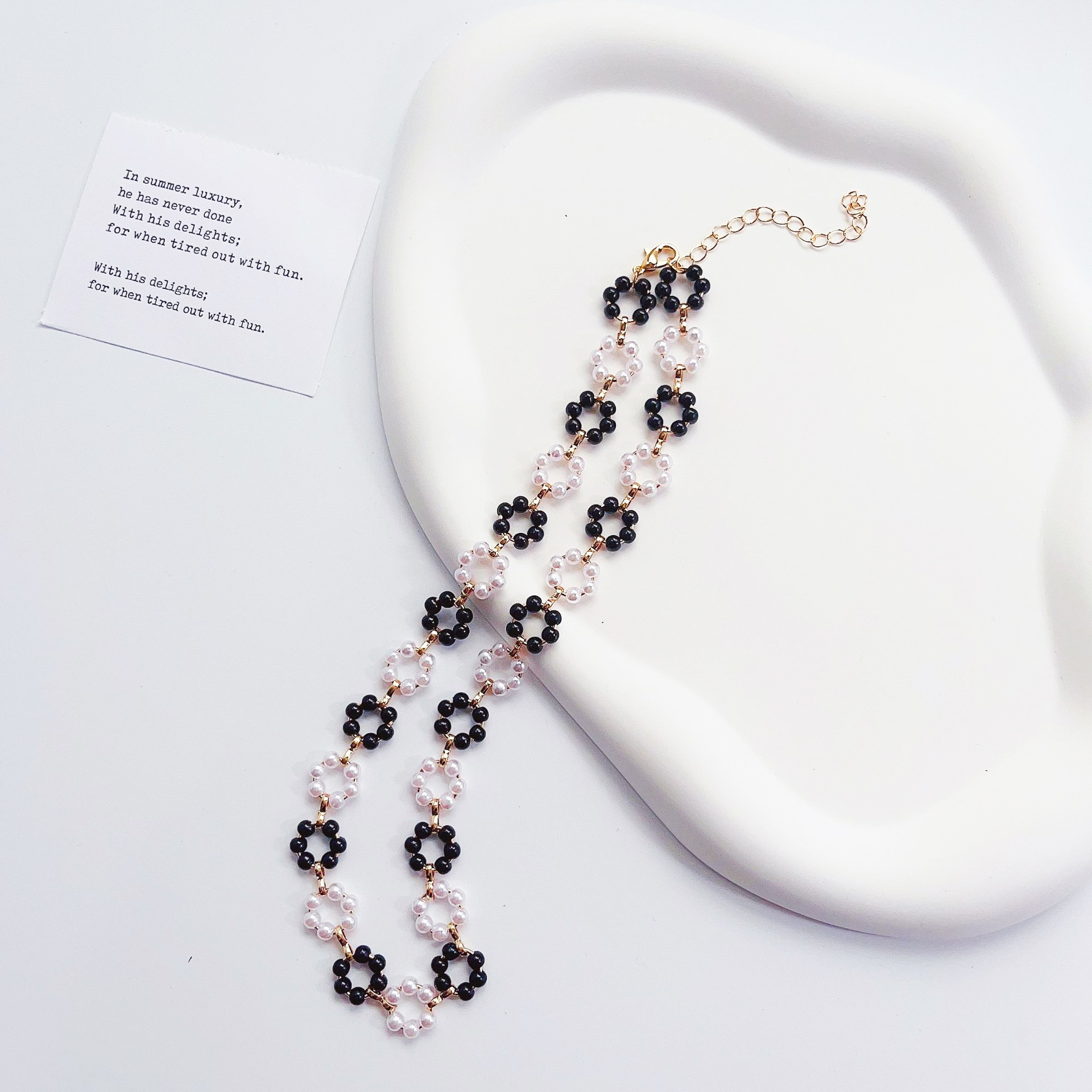 Thiết kế độc đáo, sáng tạo hoa ngọc trai nhỏ xinh, bó sát cổ.