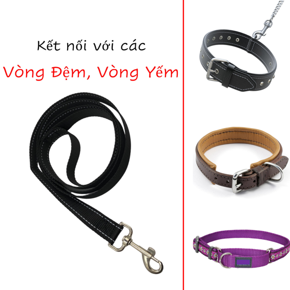 Màu sắc: Màu đen viền trắng, màu sắc dễ phối với các loại vòng cổ khác nhau. Chất liệu: Vải dù. Kích thước: Dài 1m Đầu móc khoá inox bền và không gỉ sét. Thích hợp sử dụng cho: Chó, mèo, các loại thú cưng khác.