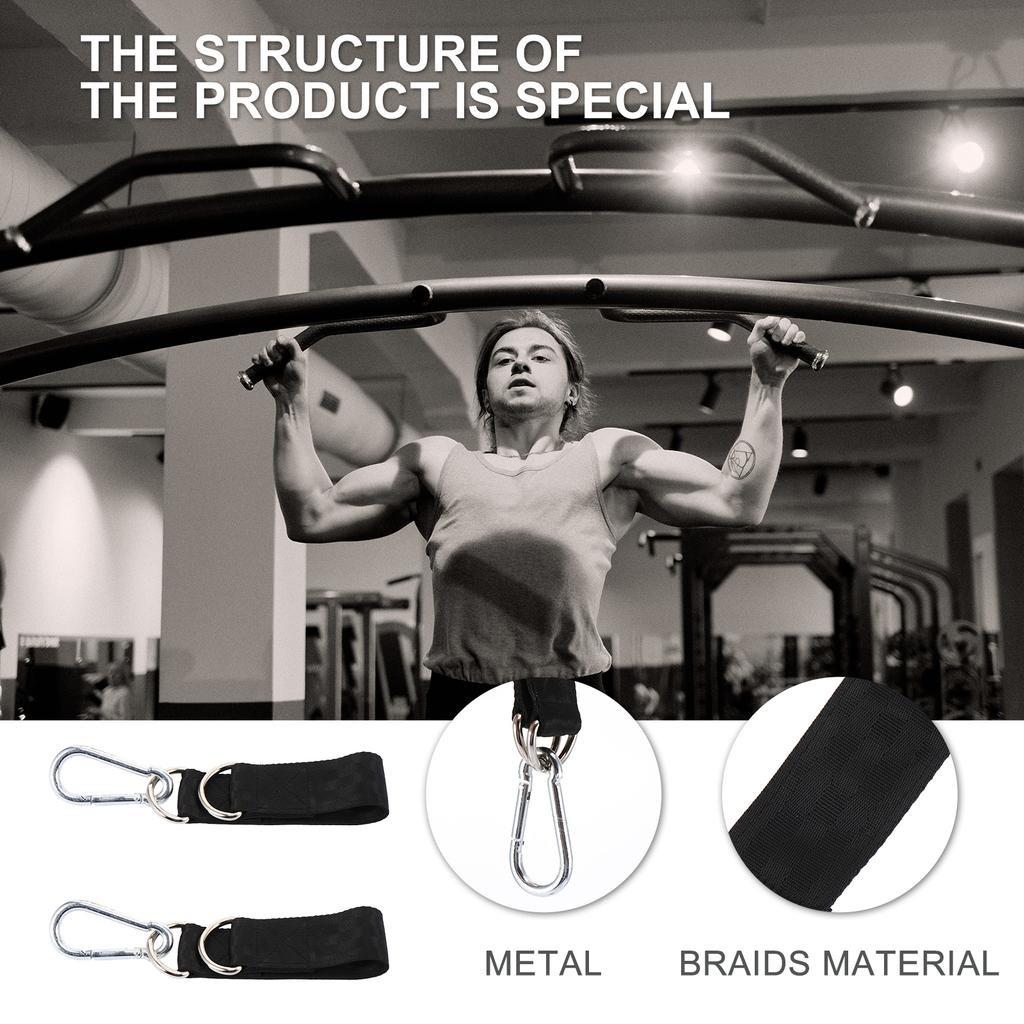 - Tuyệt vời cho các bài kéo xuống dưới trên máy tập thể dục, pullups và các bài tập treo khác. Sản phẩm bao gồm: 1 cái hanging strap + móc khóa