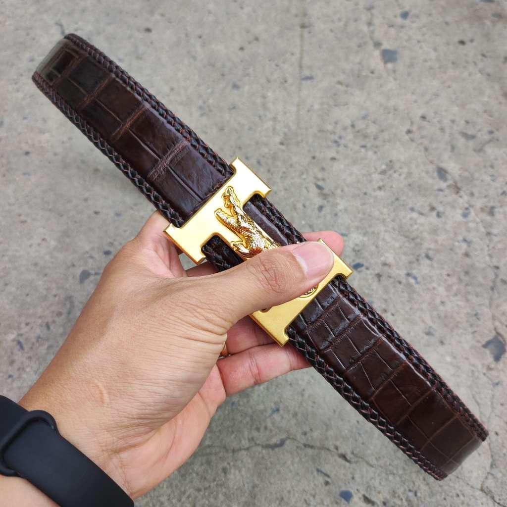 [SIÊU PHẨM] Dây lưng cá sấu liền tấm da bụng 4cm. Khóa thép chữ H doanh nhân H30D