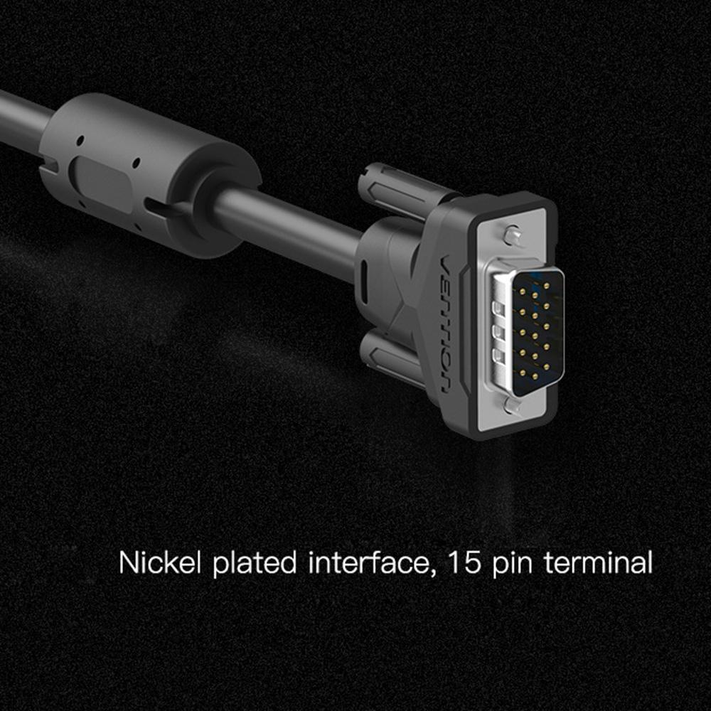 This VGA cable is a perfect choice for directly connecting a high-resolution monitor or projector to a laptop or desktop in an office or conference room. High-purity oxygen-free-copper core wires offer exceptional picture quality with no fuzzy images, giving you fluent and clear visual experience. Features: High-performance VGA cable connects a VGA equipped computer to a monitor or projector with 15-pin VGA port. Resolution up to 1080p, bringing full-color images, clear quality and excellent visual experience. High-purity oxygen-free copper core wires make digital transmission more stable. Aluminum foil and 3+6 double magnetic rings design succeed in anti-interference and suppressing noise, making transmission more stable and clear. Dust cover design prevents the plug from dust or water, extending its service life. Widely used in computers, cameras or TV projectors. Three options with various lengths, including 1.5m/3.0m/5m. Specification: Brand Name: VENTION Model Number: VAG-B04-B150/VAG-B04-B300/VAG-B04-B500 Connector: Nickel-plated Material: PVC Jacket Type: VGA Cable 3 + 6 Wire Core: Oxygen-free copper Gender: Male to Male Interface Shielding: Aluminum Foil Supporting Max Resolution: 1080P Color: Black Item Length: approx. 3.0m / 9.84ft Package Size: approx. 17 16.5 3.5cm / 6.69 6.49 1.37in Package Weight: approx. 290g / 10.22oz Package list: 1 * VGA Extension Cable