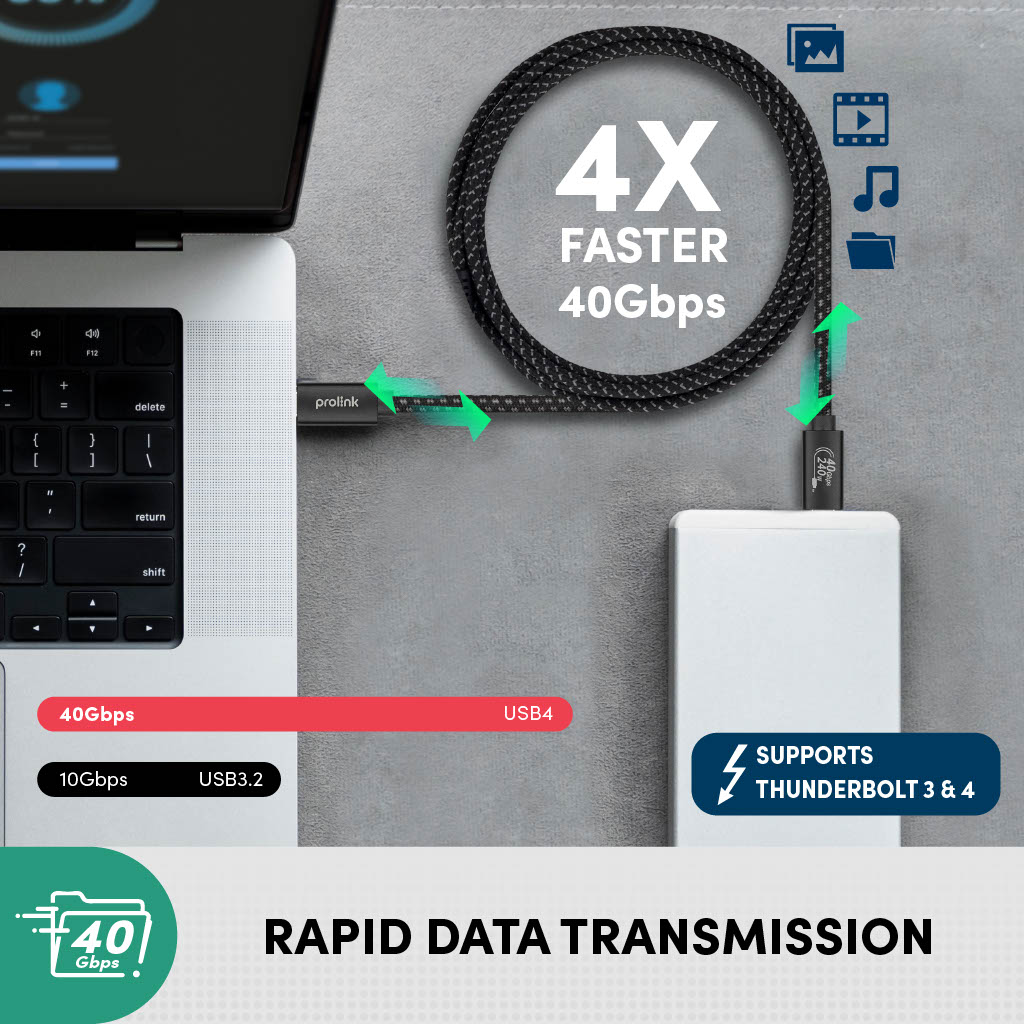 • Truyền dữ liệu siêu tốc: Truyền tệp, dữ liệu, âm thanh và video với tốc độ truyền đáng kinh ngạc 40Gbps.