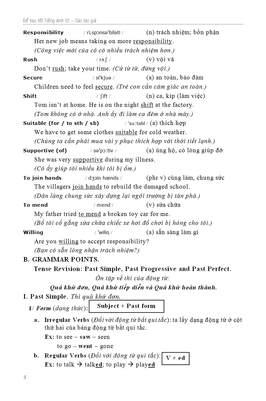 Nhằm giúp các em có tài liệu để tham khảo, tự học thêm hay ôn tập sau những giờ trên lớp ở trường phổ thông; cũng đồng thời giúp quí vị phụ huynh có thể kiểm tra, giúp đỡ các em học tập, ôn bài, chúng tôi biên soạn bộ sách Học tốt Tiếng Anh này với các nội dung sau: