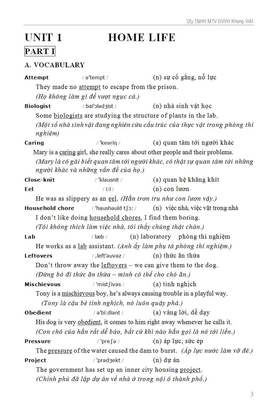 Chú giải các chủ điểm ngữ pháp sử dụng trong mỗi đơn vị bài học.