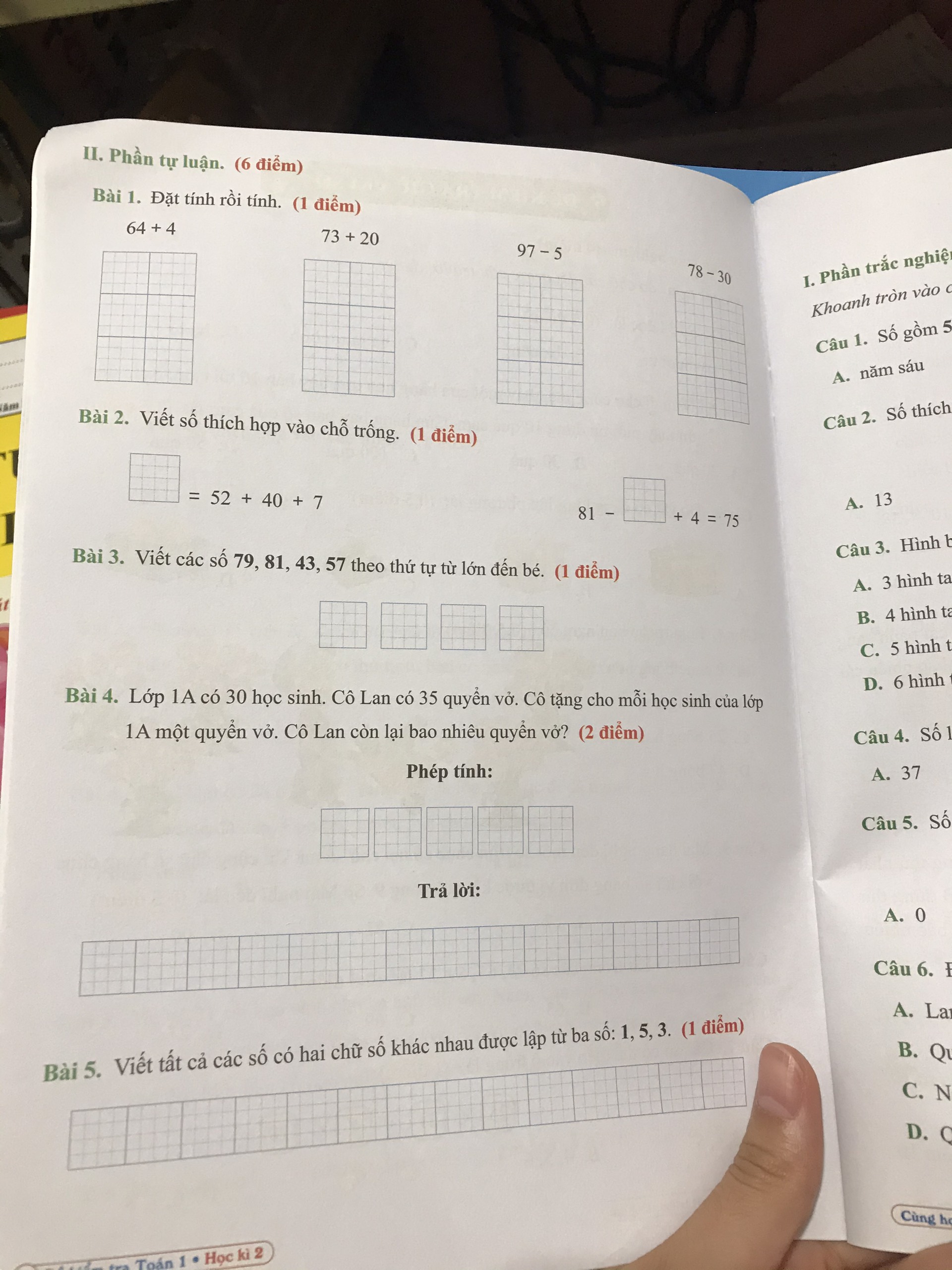 Dạng bài tập bám sát cấu trúc để thi giúp học sinh ôn tập và rèn luyện để tự tin khi bước vào kì thi. Dòng kẻ ô ly giúp học sinh viết và làm bài thuận tiện. Hỗ trợ phụ huynh tham gia nhóm để giải đáp thắc mắc về bài tập.