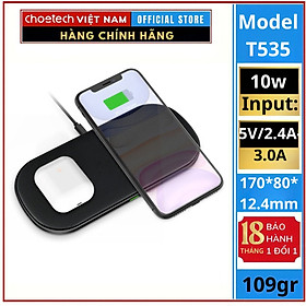 Mua tại TiktokGiới thiệu Đế sạc Choetech T535 không dây 2 in 1 công suất 10w (Hàng chính hãng)