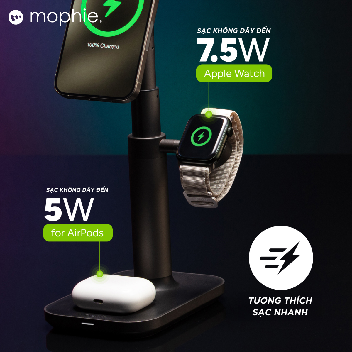 ĐẾ SẠC MOPHIE 4 IN 1 SẠC ĐA THIẾT BỊ - TRỌN TIỆN ÍCH Đế sạc Mophie 4 in 1 Mophie là một trong những thương hiệu phụ kiện chất lượng hàng đầu thế