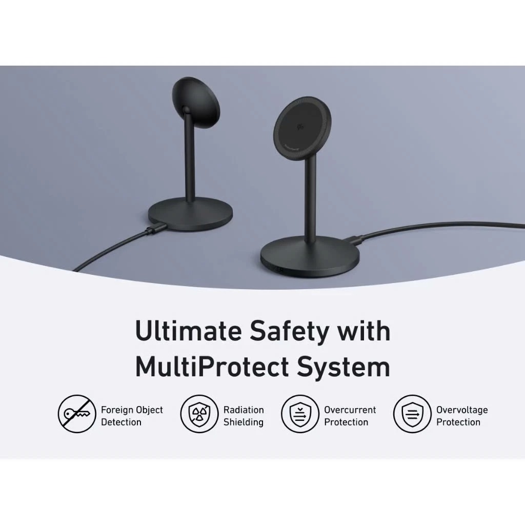 Sạc 15W tương thích với các thiết bị từ tính Trải nghiệm sạc nhanh với công suất đầu ra không dây 15W tương đương với hiệu suất của công nghệ từ tính. Sạc rảnh tay