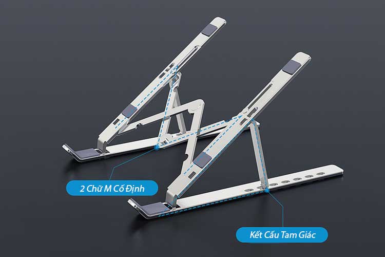 Stand Nhôm Tản Nhiệt Dành Cho Macbook, Laptop Có Thể Gấp Gọn Và Điều Chỉnh 6 Nấc Độ Cao Lucas - Đế máy tính xách tay: Hợp kim nhôm; điều chỉnh; có thể gập lại