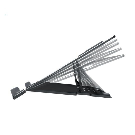 Nó được thiết kế để gập phẳng để dễ dàng cất giữ và di chuyển, cũng như giữ cho không gian làm việc của bạn sạch sẽ và gọn gàng. Đặt góc nhìn hoàn hảo của bạn với 5 cài đặt độ cao có thể điều chỉnh được để có tư thế tối ưu nhằm giảm đau nhức cơ thể và mỏi mắt khi sử dụng máy tính xách tay của bạn trong thời gian dài.