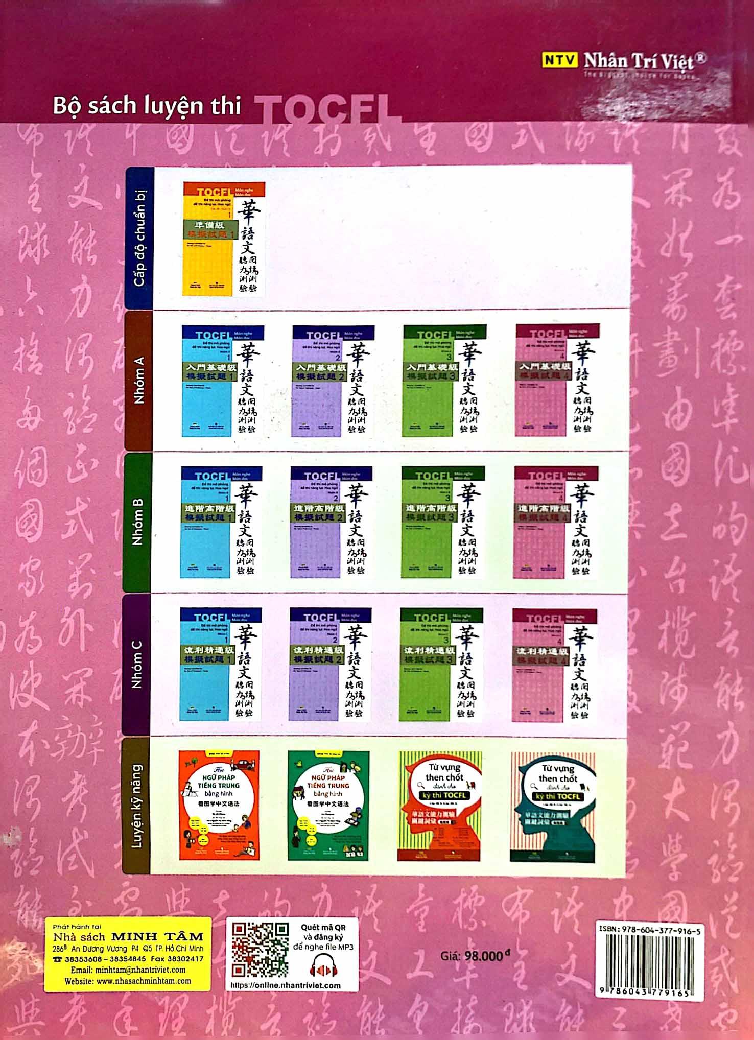 Cẩm Nang Nâng Cấp Từ Vựng Tiếng Trung Theo Chủ Đề - Tập 2 Hành trình chinh phục Hán ngữ sẽ đạt hiệu quả tối ưu khi người học xây dựng được một vốn từ vựng phong phú và hệ thống. Việc mở rộng vốn từ không chỉ củng cố nền tảng ngôn ngữ vững chắc mà còn đóng vai trò then chốt trong việc phát triển đồng đều cả bốn kỹ năng ngôn ngữ: nghe, nói, đọc và viết. Nhằm đáp ứng nhu cầu học tập thiết thực, bộ sách “Cẩm nang nâng cấp từ vựng tiếng Trung theo chủ đề” (gồm 2 tập) được biên soạn với mục tiêu giúp người học ghi nhớ từ vựng một cách hệ thống, tạo liên kết chặt chẽ giữa các từ đã học và khắc phục tình trạng học rời rạc, mau quên. Phương pháp học theo chủ đề cho phép người học nhóm các từ vựng liên quan lại với nhau, từ đó dễ dàng mở rộng, liên tưởng và ghi nhớ sâu hơn khi bắt gặp từ mới. Bộ sách tập trung vào những chủ đề thông dụng, sát thực với đời sống hiện đại: - Tập 2: Thiên nhiên, cơ thể người, cảm xúc, tính cách.