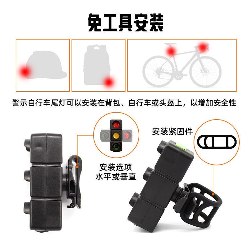4.Đèn hậu xe đạp có thể nhanh chóng và dễ dàng thay đổi mọi chế độ ánh sáng thông qua nút công tắc, thiết kế siêu sáng hộ tống khi đi xe đêm.