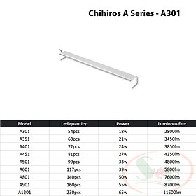 Mua tại TiktokĐèn led Chihiros A 30, 40, 45, 50, 60, 80, 90, 120 cm series được làm từ bóng led có độ sáng cao, thiết kế chuyên nghiệp cho cây trồng thủy sinh. Là kết quả của sự hợp tác giữa Chihiros và các chuyên gia led của Nhật Bản, với ánh sáng trắng đầy đủ hơn 88% so với chuẩn HCRI, làm cho đối tượng trong bể gần với màu tự nhiên nhất. Đèn led Chihiros A series với thiết kế hợp kim nhôm và xử lý bề mặt bằng công nghệ anod hóa, hiệu quả trong việc làm giảm nhiệt lượng tỏa ra thường gặp ở đèn led công nghiệp, ngăn ngừa thiết bị bị rỉ sét. THÔNG SỐ KỸ THUẬT ĐÈN LED CHIHIROS A 30, 35, 40, 45, 50, 60, 80, 90, 120 CM: