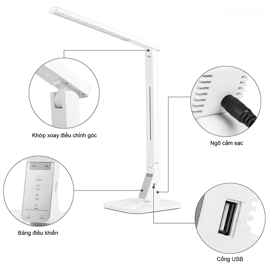 Đặc điểm nổi bật: - Chạm trượt điều chỉnh 5 cấp độ sáng - Chế độ hẹn giờ thông minh 45 phút - Chế độ đọc sách 4000K - Phần đế xoay tròn 180º -