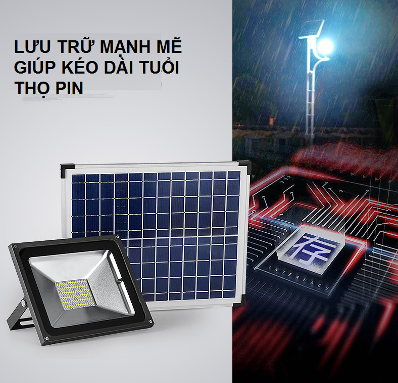 KHÔNG TỐN TIỀN ĐIỆN -> ĐÈN LED NĂNG LƯỢNG 100W, 200w, 300w, IP67, vỏ hợp kim Nhôm có đèn báo % dung lượng ️ Thông số đèn 100w: -Đèn đúng 100w với 263 chip led,
