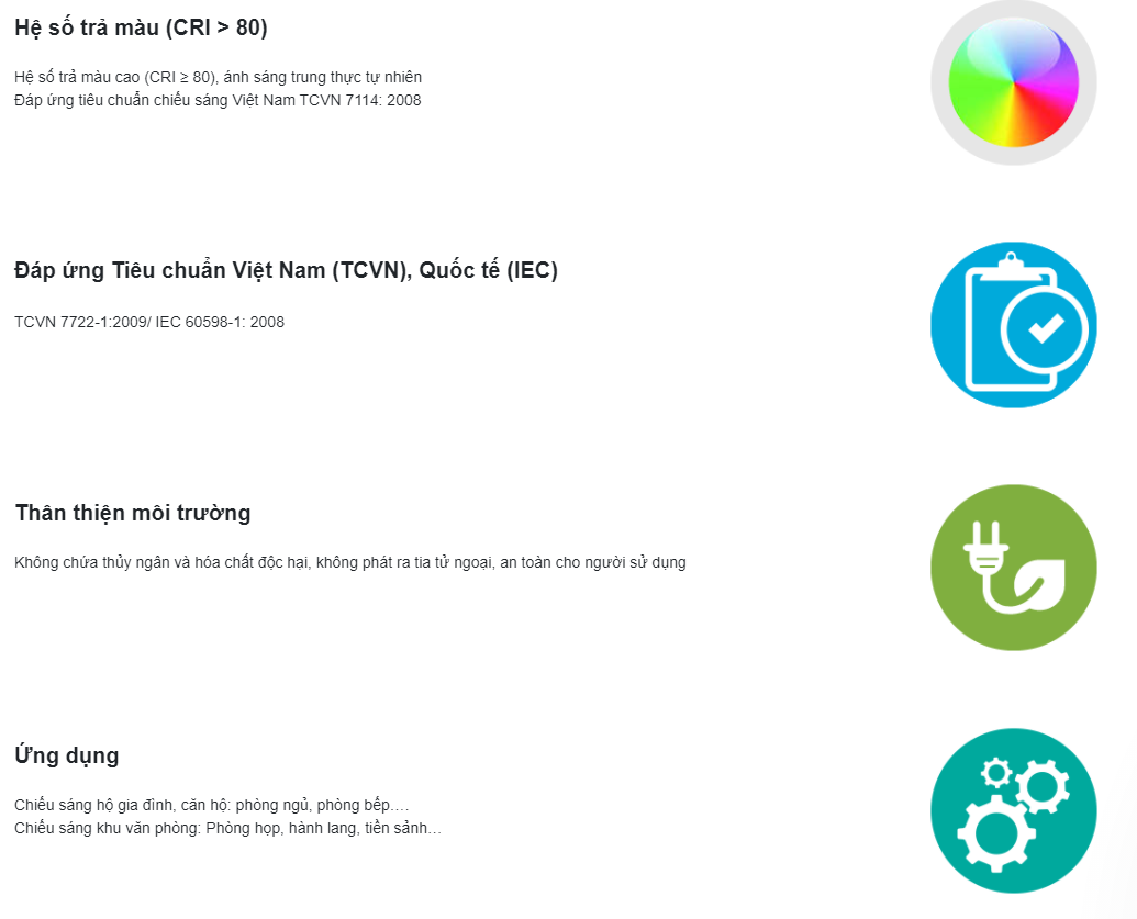 - Tuổi thọ dài, ít phải thay thế, dễ dàng lắp đặt, thay thế đèn ốp trần lắp sợi đốt, compact