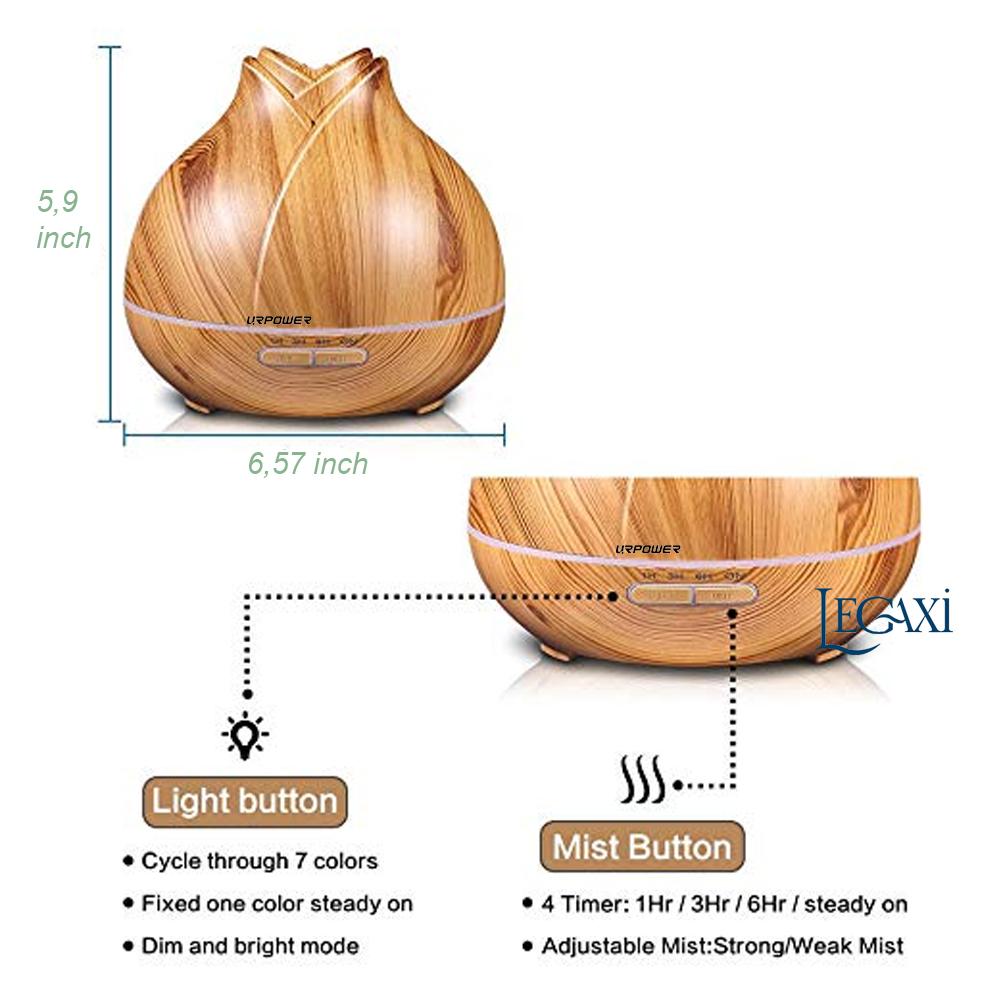 THÔNG TIN SẢN PHẨM - Màu sắc: gỗ sáng/ gỗ tối - Kích thước: 17*17*22.7cm - Chất liệu: Nhựa ABS - Dung tích: 500ml - Trọng lượng: 400g - Công suất: 8W - Diện tích