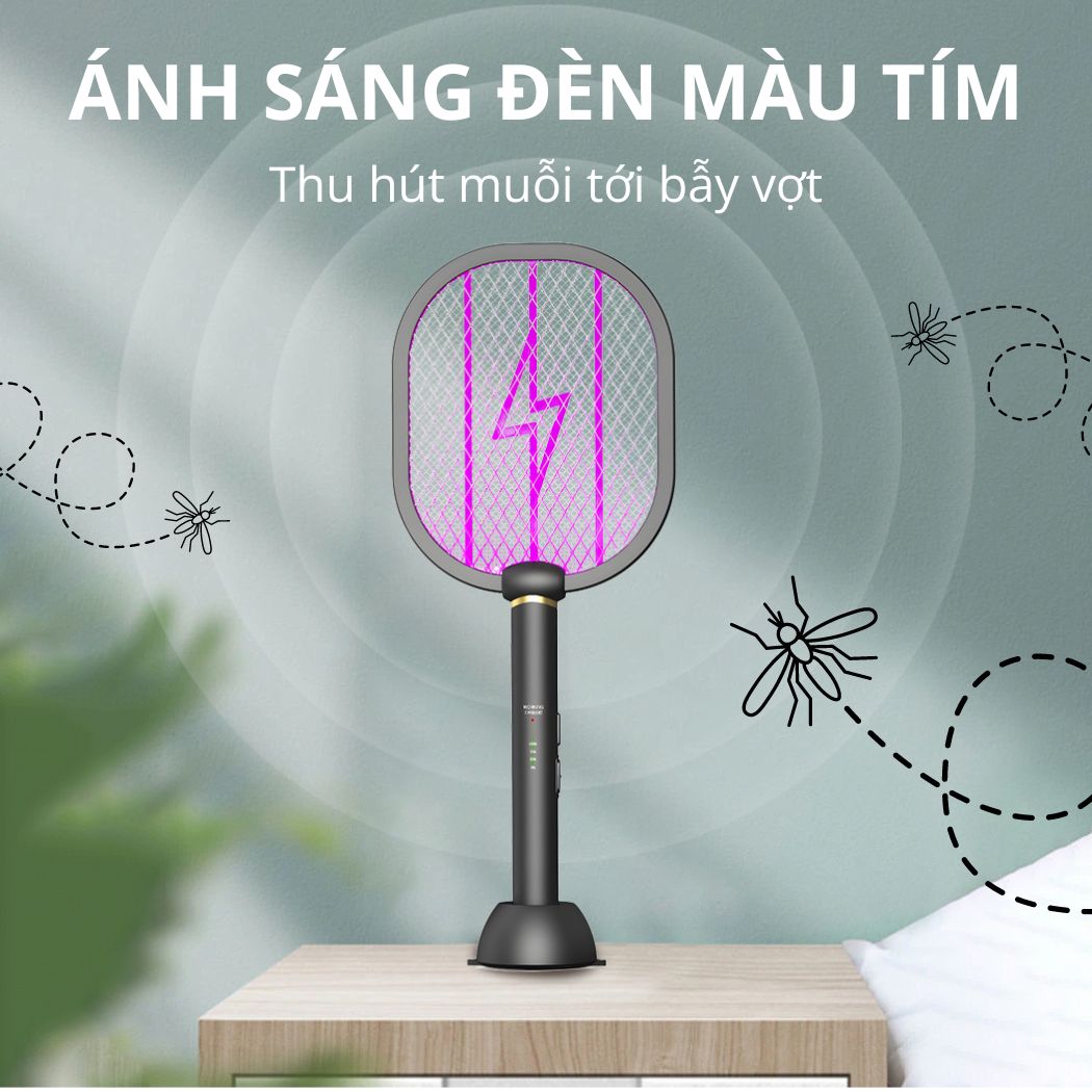 VỢT MUỖI, ĐÈN BẮT MUỖI VỢT MUỖI THÔNG MINH 3IN1 Vợt Muỗi Thông Minh Tự Động, Kết Hợp Đèn Bắt Muỗi, Sạc Tích Điện Đa Năng Có Đế Để Bàn Tiện Lợi THÔNG